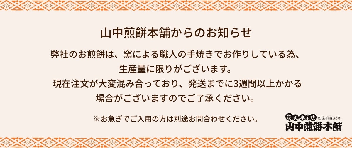 会津喜多方の伝統米菓「たまりせんべい」を含む詰め合わせ3種類。 一枚一枚、職人の手によって焼き上げられるせんべい。レンガ窯の炭火は、赤々とせんべいを内側から熱し、風味を逃がしません。 <商品内容> コシヒカリたまりせんべい5枚×1袋 喜多方たまりせんべい(厚焼き)5枚×1袋 喜多方ラーメンせんべい5枚×1袋 もち草せんべい5枚×1袋 コシヒカリ会津山塩せんべい5枚×1袋 <原材料名> 【コシヒカリたまりせんべい】 米(国産)、醤油 (原材料の一部に大豆、小麦を含む) 【喜多方たまりせんべい(厚焼き)】 米(国産)、醤油、調味料(アミノ酸等) (原材料の一部に大豆、小麦を含む) 【喜多方ラーメンせんべい】 うるち米(国産)、醤油ラーメンスープ、香辛料、調味料(アミノ酸等) (原材料の一部に大豆、小麦を含む) 【もち草せんべい】 うるち米(国産)、よもぎ、食塩、醤油、砂糖 (原材料の一部に大豆、小麦を含む) 【コシヒカリ会津山塩せんべい】 うるち米(国産)、食塩(会津山塩100%)、砂糖、ぶどう糖果糖液糖、タンパク加水分解物、チキンエキス、香辛料、魚介エキス、調味料(アミノ酸等) (原材料の一部に大豆、鶏肉、豚肉、ゼラチンを含む) <賞味期限> 3ケ月以上のものをお送りいたします。 <保存方法> 直射日光及び高温多湿を避けて保存してください。 ラーメンせんべいのみ、堅さを出すために機械焼きです。 個包装してあります。 オレンジの化粧箱に入れ、青×白の包装紙で包装します。 ※紙袋は付きませんので別途オリジナル紙袋を必要枚数カートに入れてご購入ください。 ※熨斗をご希望の方は注文フォームの備考欄にお名前をご記入ください。記入がない場合は空白でお付けいたします。 ★現在注文が大変混み合っているため、発送までに3週間以上かかる場合があります。